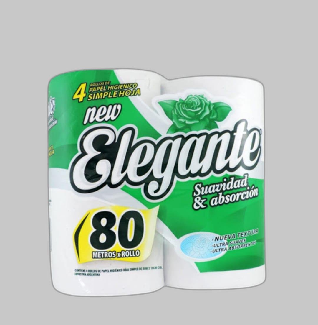 Papel higiénico Max Elegante 4 rollos de 80 metros por paquete (pack x10), suave, resistente y de gran absorción. Ideal para quienes buscan mayor duración, rendimiento y comodidad en el uso diario.