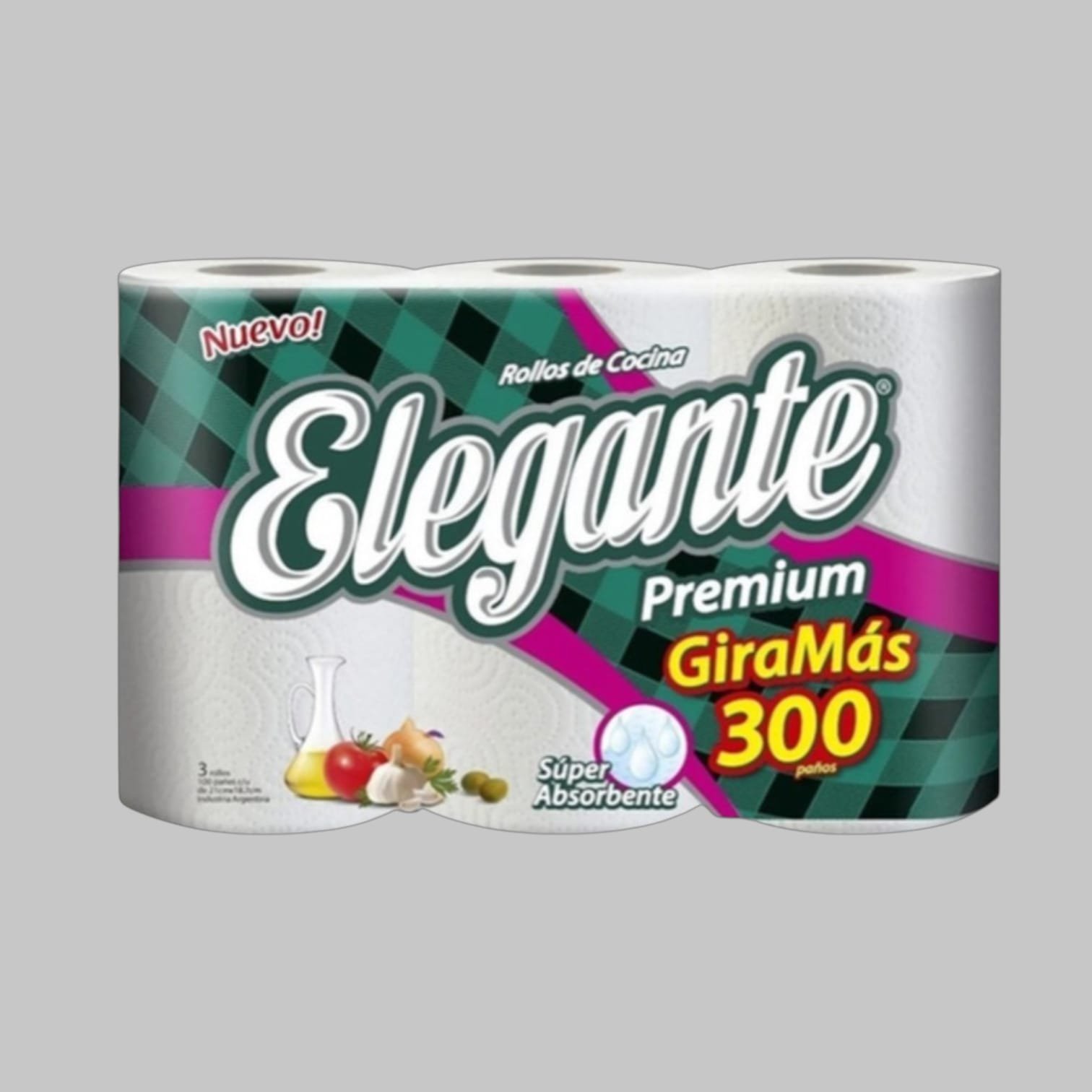 Rollo de cocina Elegante 3 rollos de 100 paños (contiene 5 paquetes), súper absorbente y resistente, ideal para mayor rendimiento y practicidad en la limpieza diaria de tu cocina.
